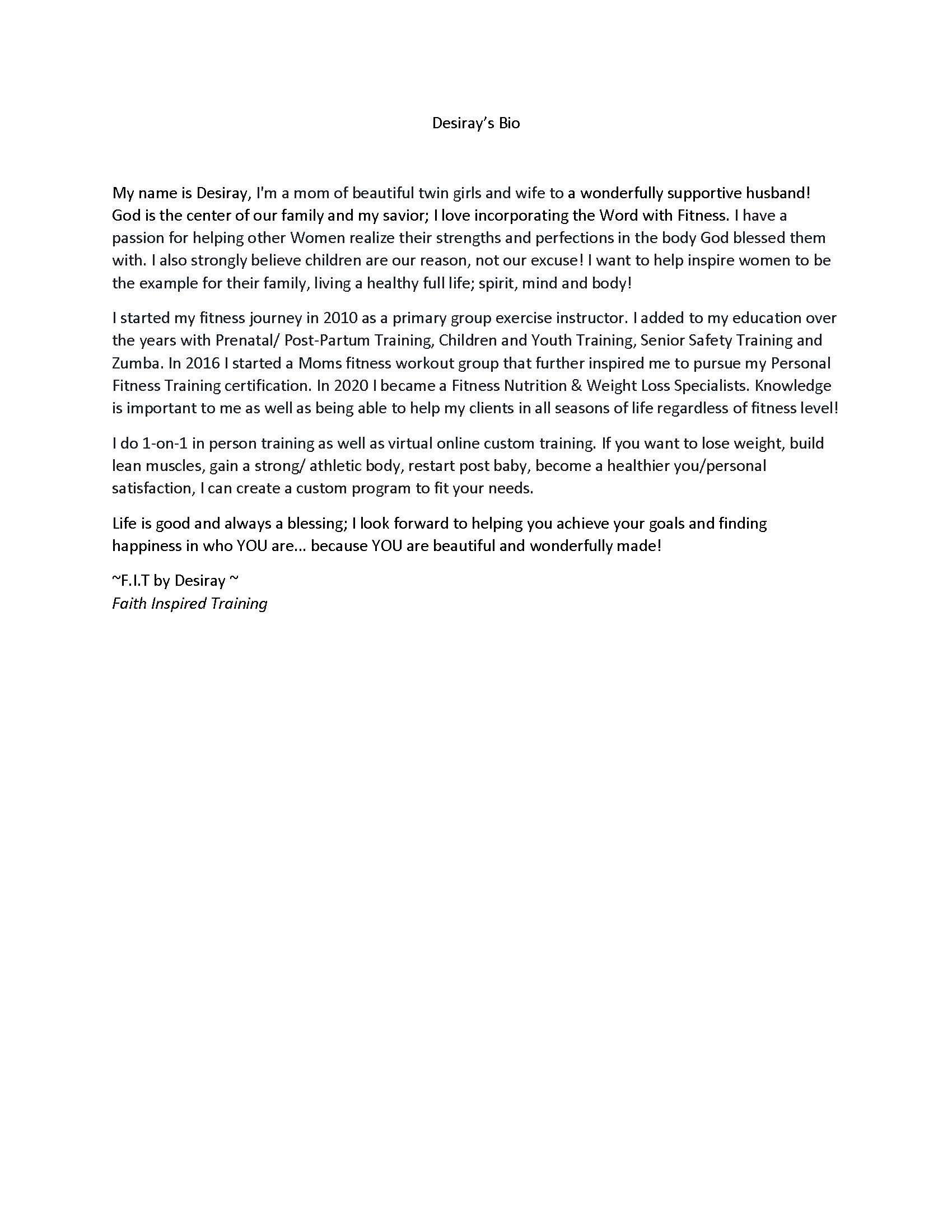 - Desiray +1(720) 938-5058 (click here to view Desiray's Bio)