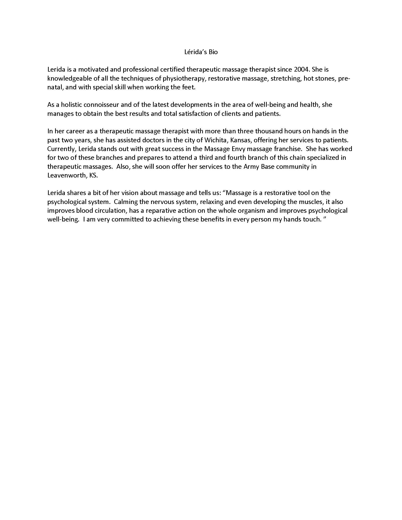 - Lérida +1(316) 207-2743 (click here to view Lérida's Bio)